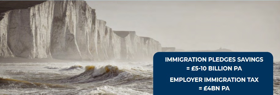 to employ British citizens whose National Insurance rate would stay at 13.8%. Essential foreign health and care workers would be exempt from the tax, as would businesses who employ 5 staff members and under. This would boost wages and could raise more than £20 billion over five years to pay for apprenticeships and training for young Brits.