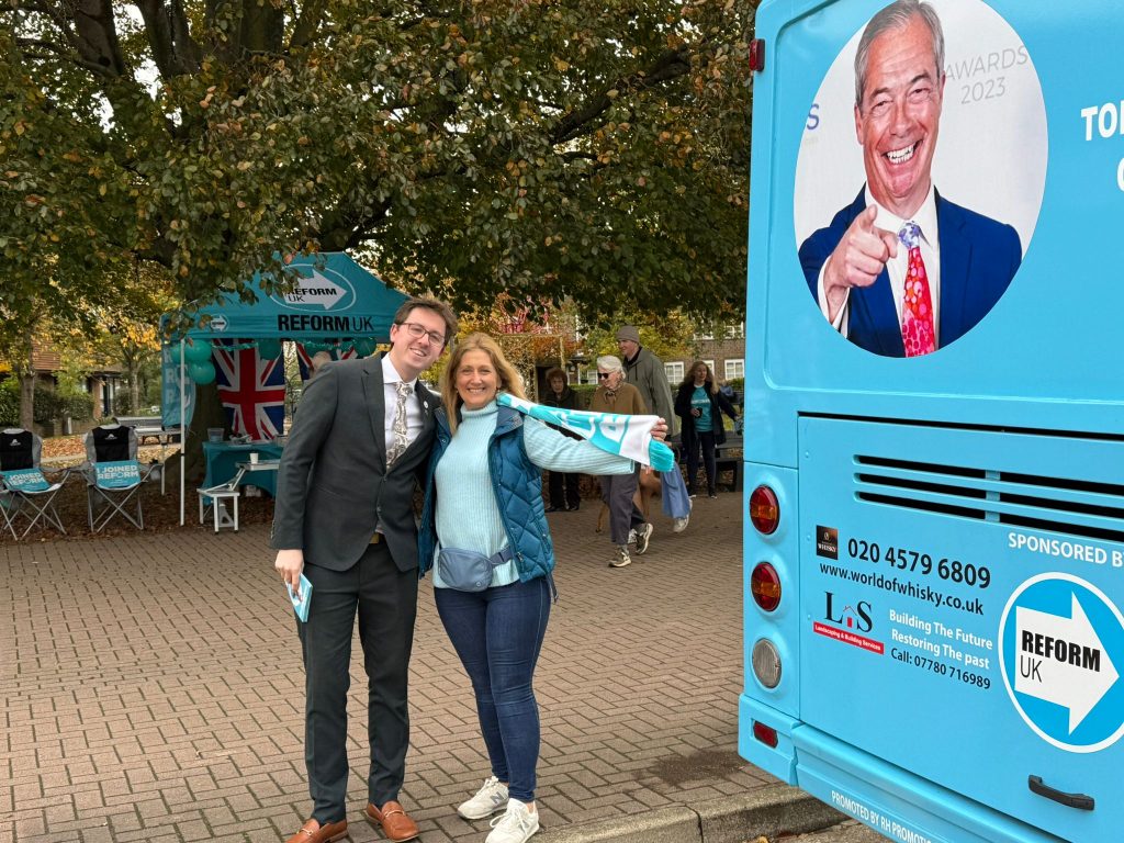 And spreading the word, Cole Caesar, 19 year old Reform councillor for Burnham, and the charismatic Carole Doel, chair of Reform UK Beaconsfield branch .